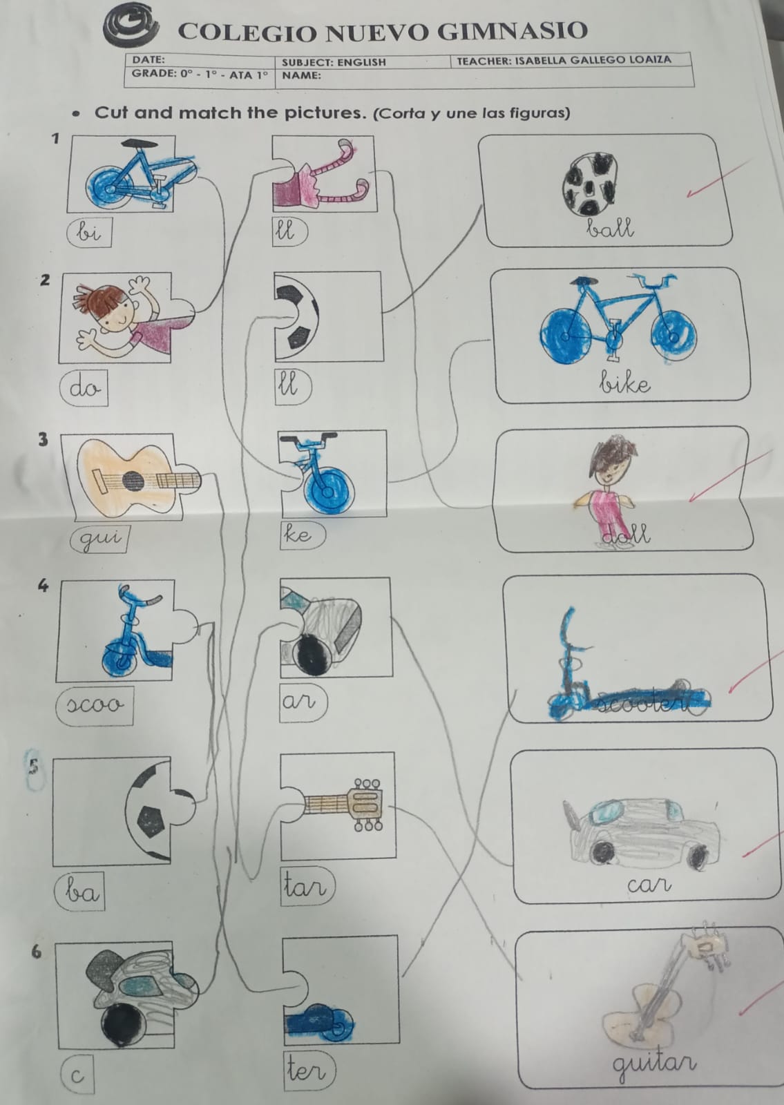 - My house: Continuando con las partes de la casa en inglés, el día de hoy los estudiantes recibieron la siguiente guía, en donde debían cortar y ubicar correctamente los elementos de acuerdo con la parte de la casa a la que pertenecen: